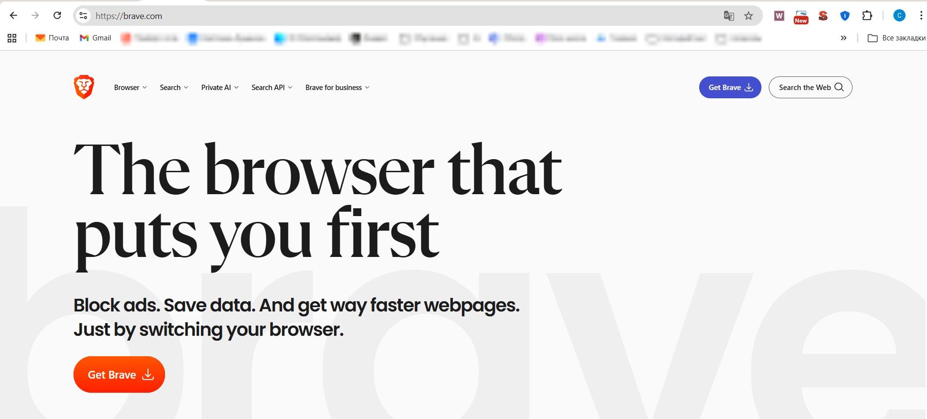 - Зайдите на официальный сайт и нажмите кнопку «Скачать Brave».