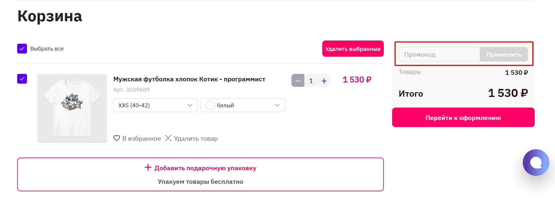 - Показ выгоды. Покупатель видит сэкономленную сумму, если на товар есть скидка или применен промокод.