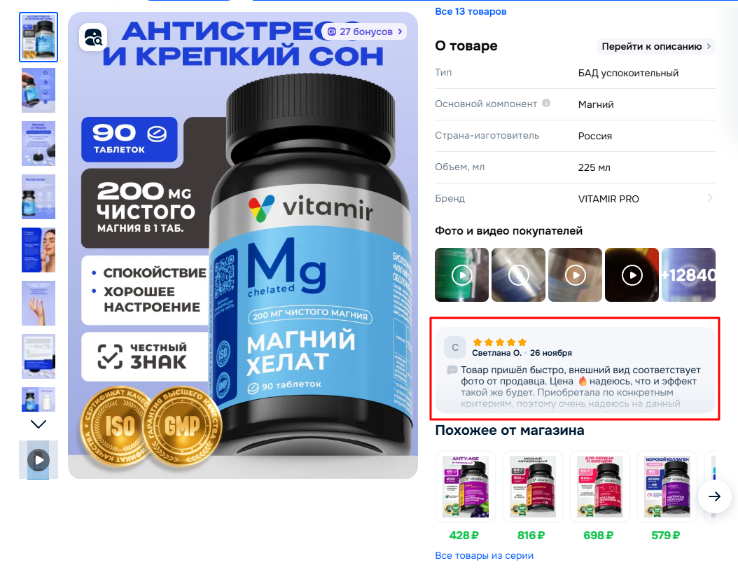 Важны не только звезды, но и содержание отзывов: наличие фото, видео, частота обновлений и динамика новых комментариев. Поэтому товар с рейтингом 4.9 и 30 отзывами может опередить в выдаче товар со 100 отзывами, но рейтингом 4.2, даже если обе карточки одинаковы.