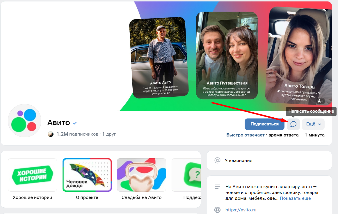 В ВКонтакте подписка для обращения не требуется, но нужно будет зайти в свой аккаунт. Затем достаточно нажать на кнопку «Написать сообщение».