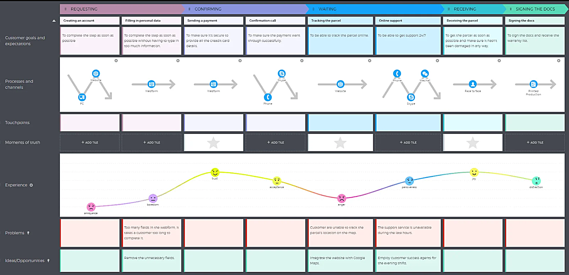 - Определите опыт и эмоции клиента, выявите возможные препятствия. Например, пользователи могут испытывать отрицательные эмоции из-за низкой скорости загрузки страниц, слишком долгой регистрации на сайте.