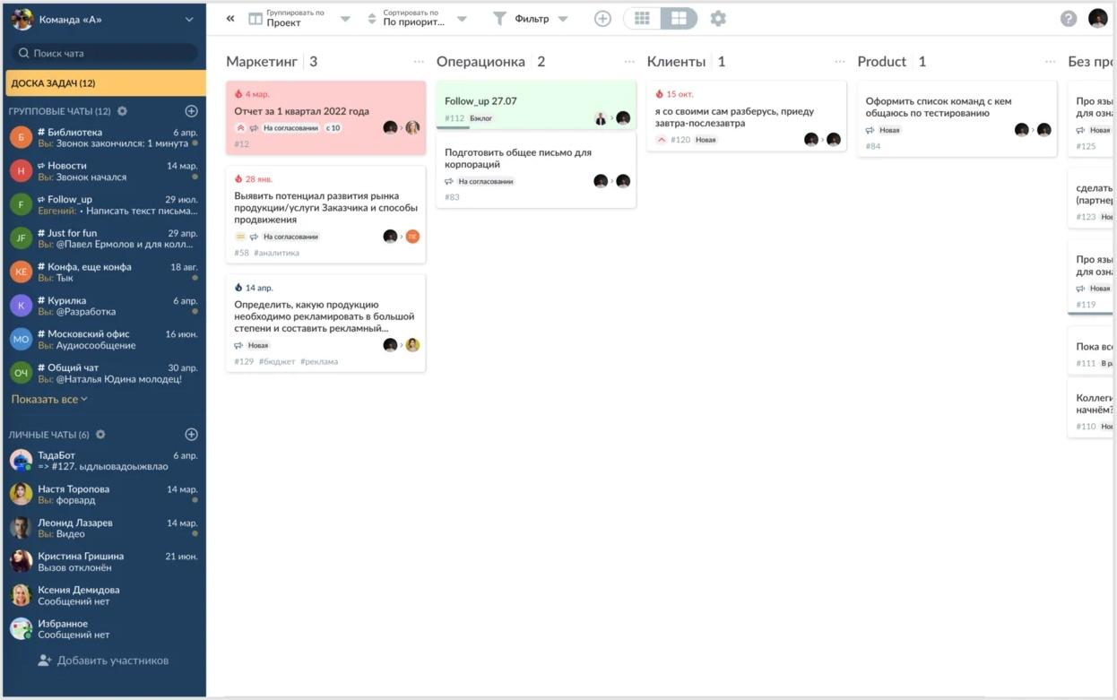 - Возможность создания и отслеживания задач прямо из чатов.