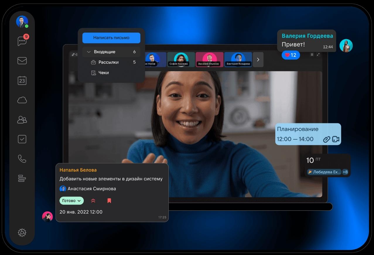 - конференции, видеосвязь и голосовые звонки;