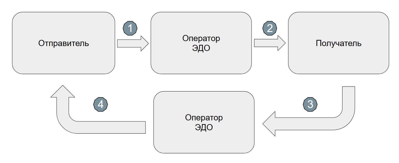 Работа с цифровыми документами проходит на стороне оператора, например, на сайте или в программе. Отправитель создаёт документ по шаблону или импортирует уже готовый со своего устройства. Далее ставит электронную подпись и отправляет файл контрагенту. Последний получает документ также на стороне оператора, проверяет его, при необходимости вносит изменения и подписывает его своей электронной подписью. После согласования обеими сторонами все документы хранятся на серверах оператора ЭДО, при этом система обязана самостоятельно проверять подлинность подписей.