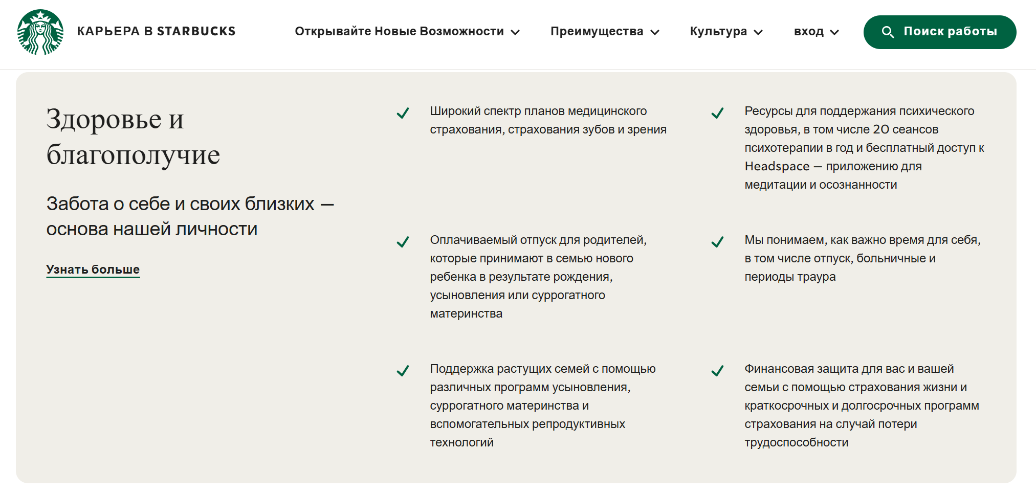- Забота о сотрудниках. Компания называет своих работников «партнерами» и предлагает различные бонусы: оплата обучения, несколько уровней медицинской страховки, бесплатный кофе, 20 сеансов психотерапии в год и другие.