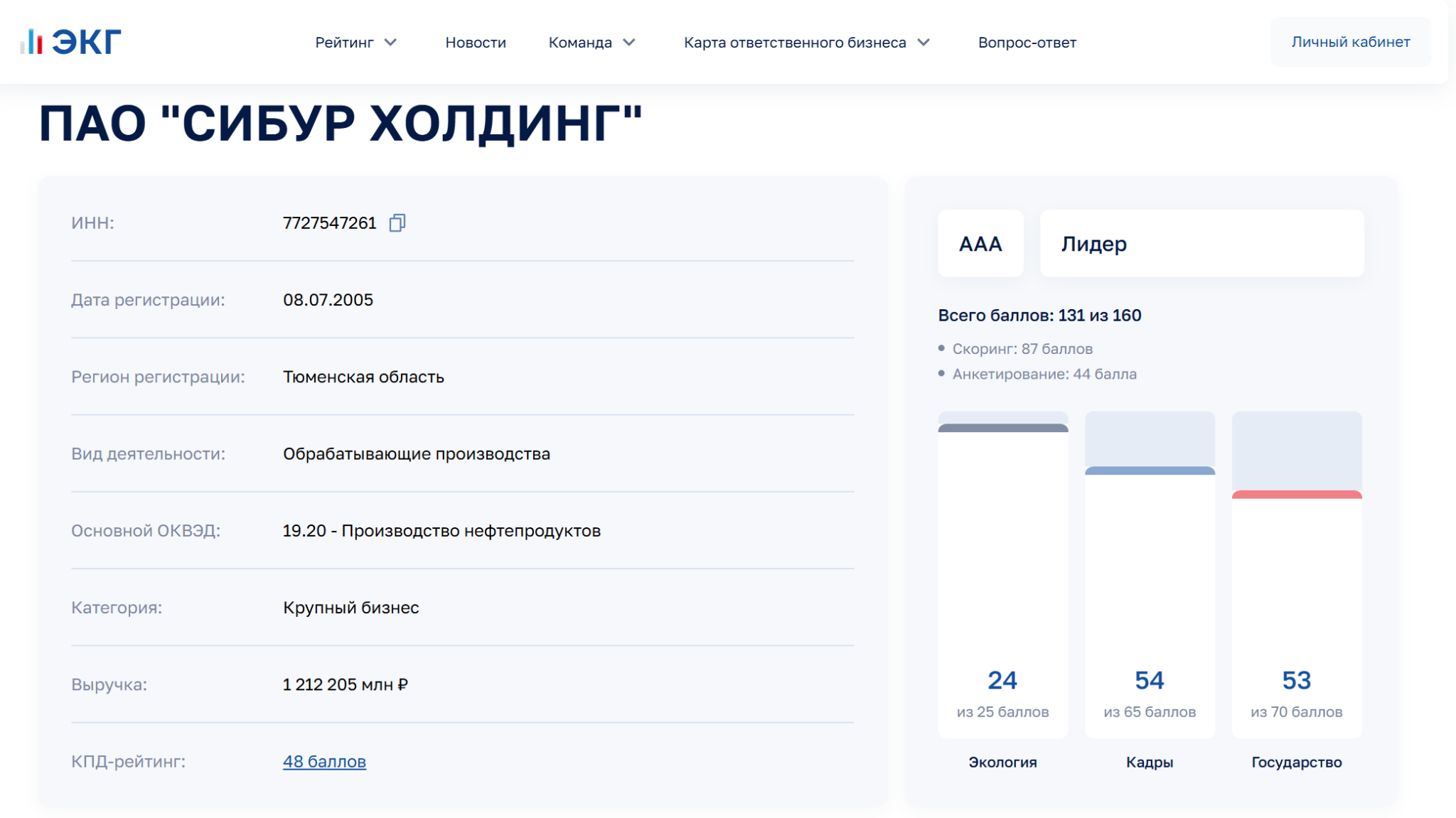 «Сибур» получил высшую оценку AAA в нескольких рейтингах. В ЭКГ-рейтинге компания набрала 131 балл из 160 возможных.