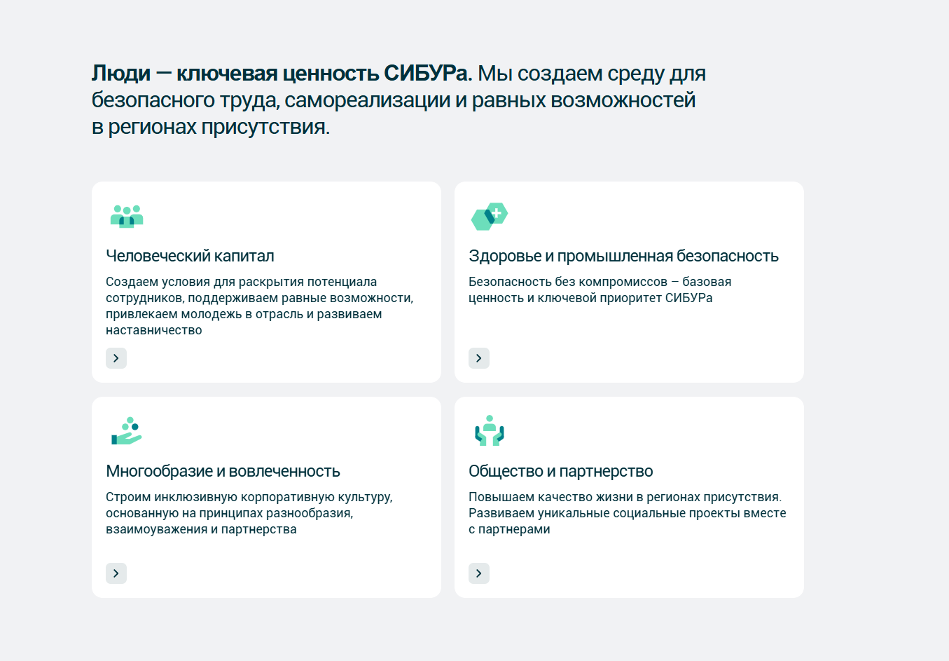 Компания поддерживает местные сообщества и развивает соцпроекты. Для сотрудников действует «Кодекс корпоративной этики» — единый стандарт честного поведения. Важно не просто давать рабочие места, а создавать среду, где людям комфортно жить и работать.