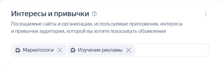 5. Таргетинг на интересы и привычки аудитории. Здесь можно указать интересы ЦА, сайты или организации, которые посещают пользователи.