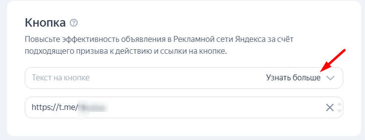 - Выбрать текст кнопки. В настройках указывается релевантный текст кнопки и ссылка перехода.
