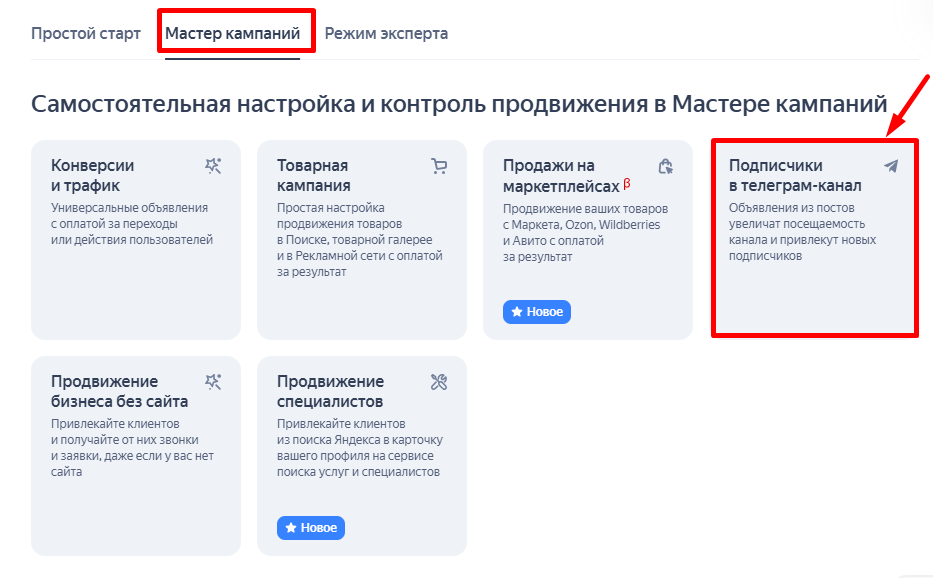- Выбрать инструмент для запуска рекламы в Директе в соответствии со своими целями. Мастер кампаний и ЕПК дают доступ к автостратегиям и большому количеству тонких настроек.