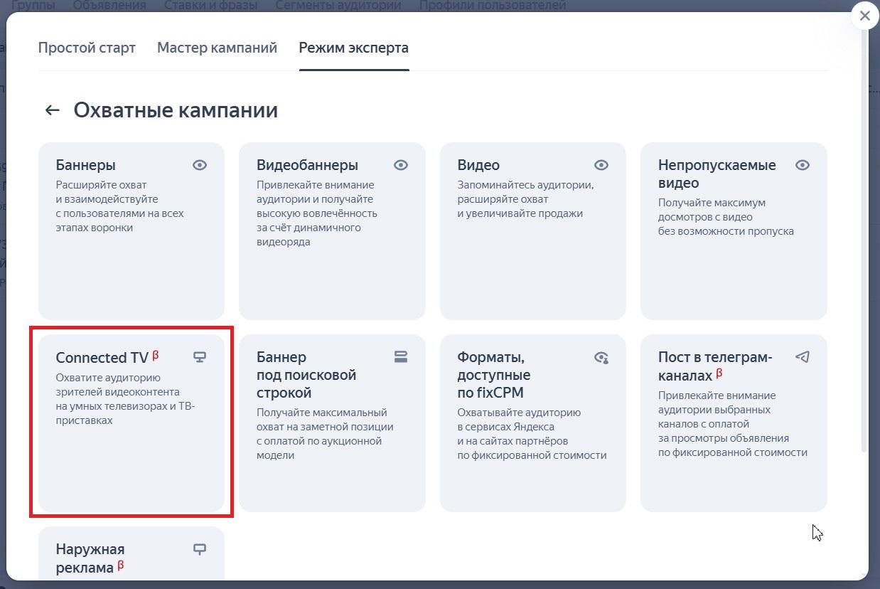 - Connected TV: продвижение на Smart TV и в онлайн-кинотеатрах