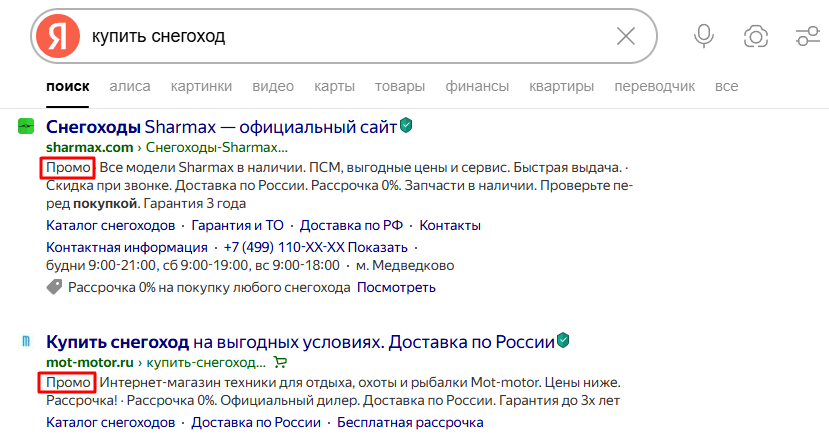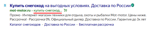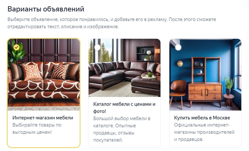 2. Текст + изображение. В большинстве случаев, это объявление в РСЯ. Если указана цена, оно покажется в товарной галерее.