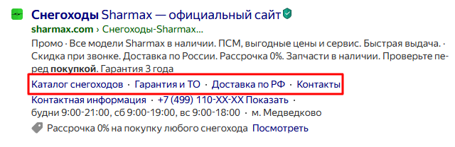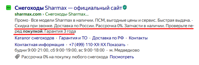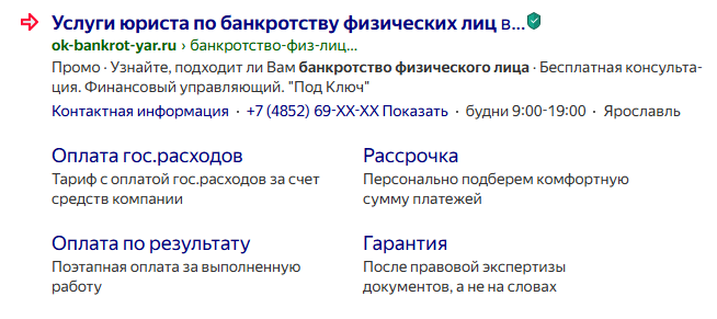 1. Только текст: заголовок, текст, ссылка, дополнительная информация — быстрые ссылки, расширения, контакты.