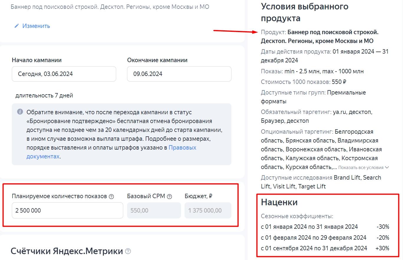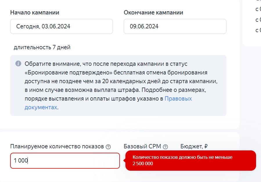- дневной бюджет — не менее 140 000 рублей без НДС;