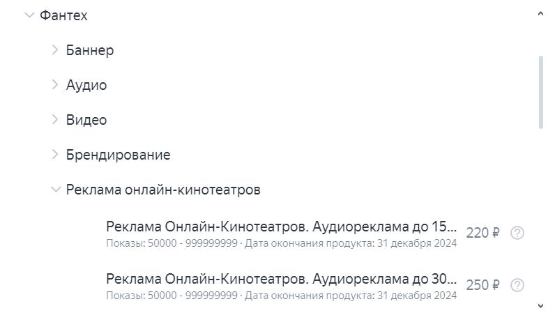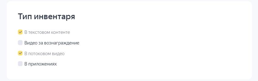 - форматам — текстовые, баннеры, видеролики, смарт-баннеры и так далее.