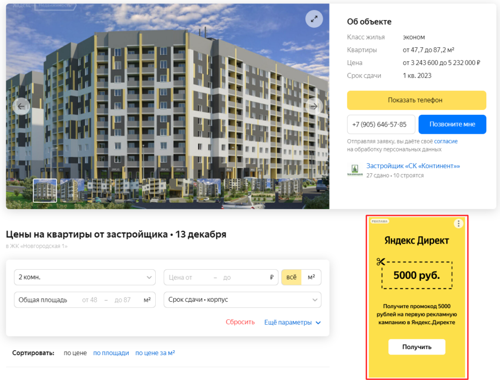 При клике на любой из этих рекламных форматов пользователь увидит подробное рекламное сообщение, сможет позвонить в организацию или перейти на сайт.