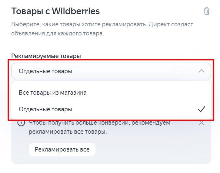 Вы можете рекламировать сразу все товары магазина или отдельные карточки.