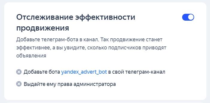 Для отслеживания эффективности можно подключить к каналу официального телеграм-бота — yandex_advert_bot.