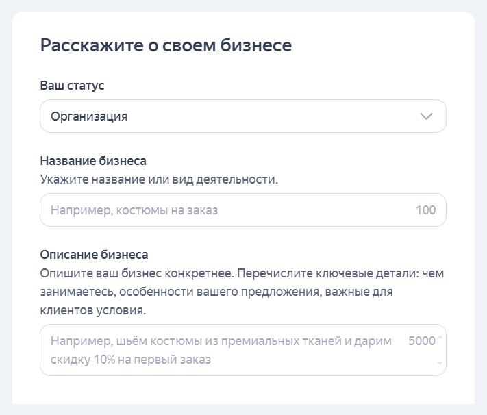 При выборе варианта «По описанию» укажите, что планируете продвигать — организацию или частного специалиста. Укажите название компании и опишите особенности бизнеса. На основе этой информации система создаст лендинг. Далее настраивайте кампанию как обычно.