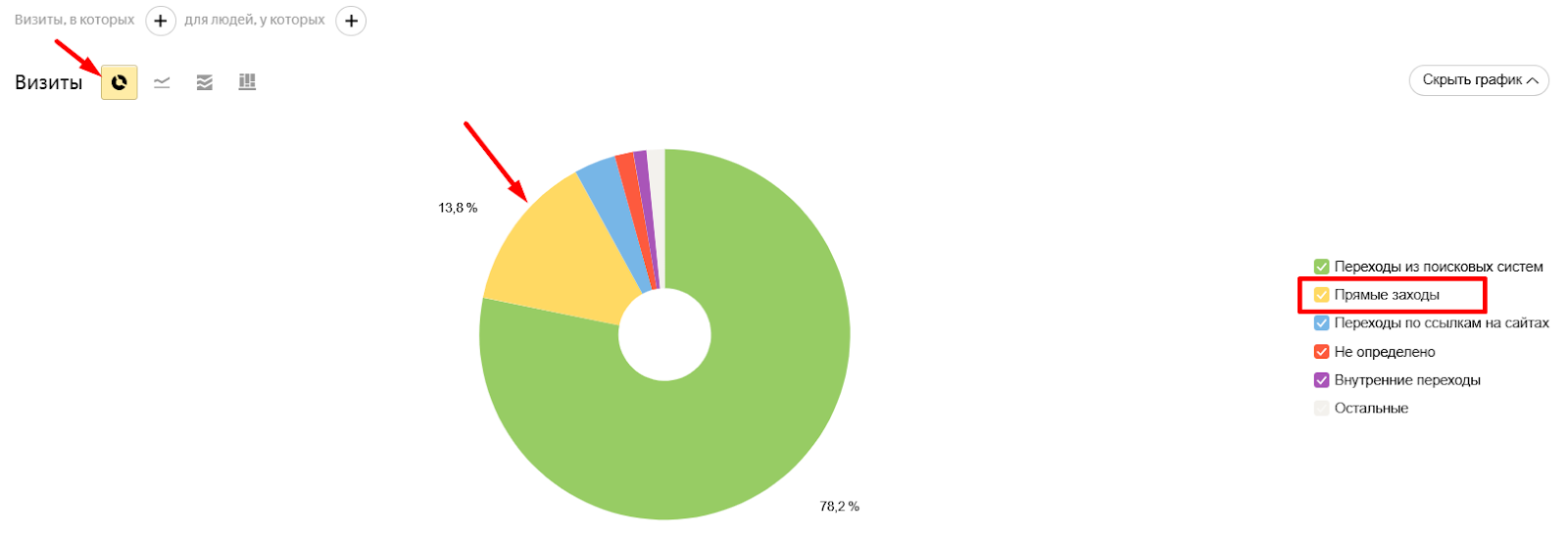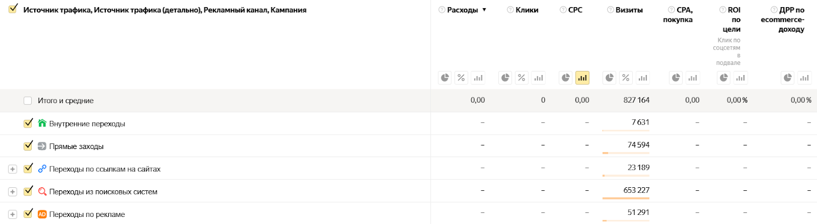 Это нужно, чтобы понять, какой вес имеют прямые визиты в общем объеме и определить наиболее и наименее значимые источники.