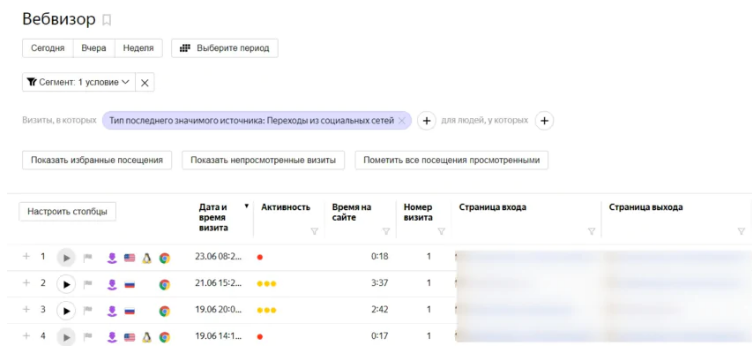 Просмотрите видеозаписи сеансов посетителей, которые пришли на сайт напрямую. Анализ их поведения покажет клики, движения курсора, заполнение форм, время пребывания на странице. Также это позволяет определить проблемы с юзабилити сайта. Инструкцию о том, как пользоваться инструментом Вебвизор от Яндекс Метрики, читайте здесь.