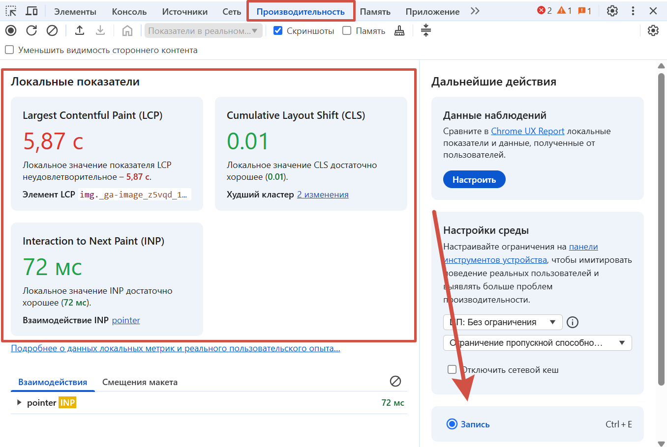 - INP — скорость отклика на взаимодействия.