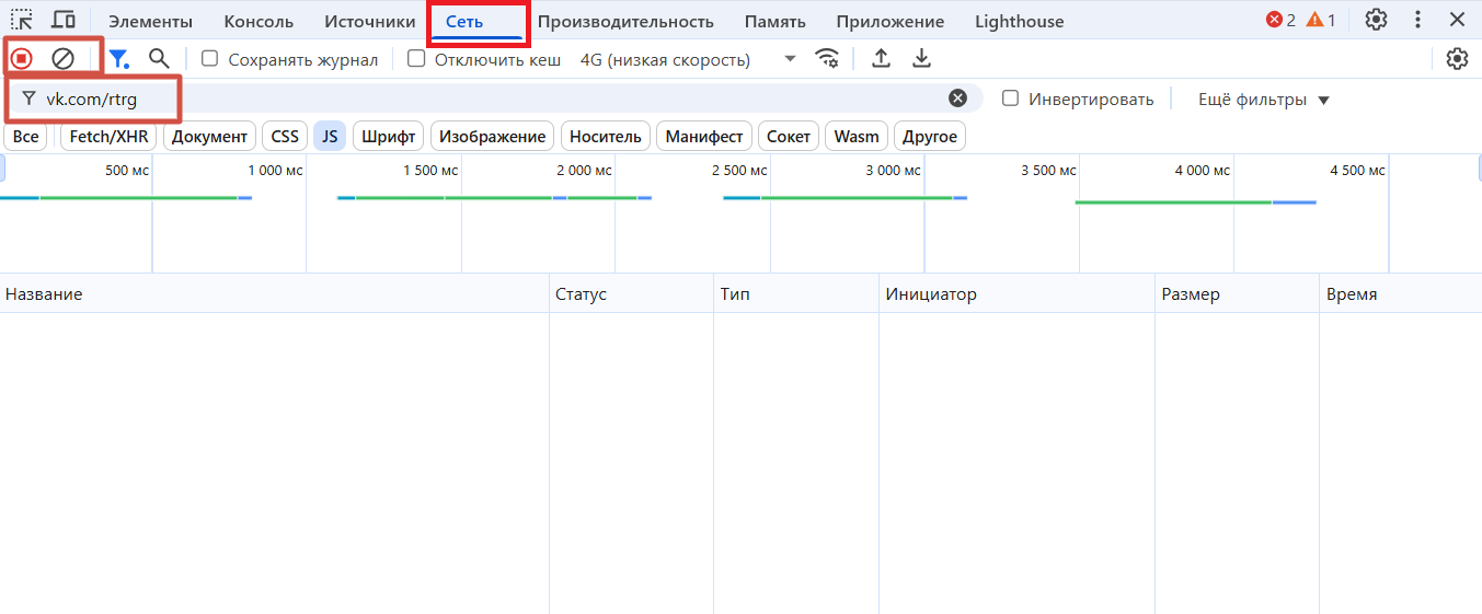 - Смотрим, появились ли запросы к vk.com.