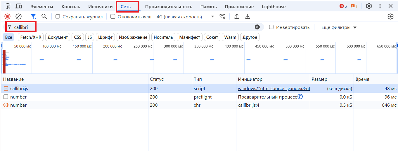 Видим, что основной скрипт системы коллтрекинга загружается, модули подмены номеров — работают.