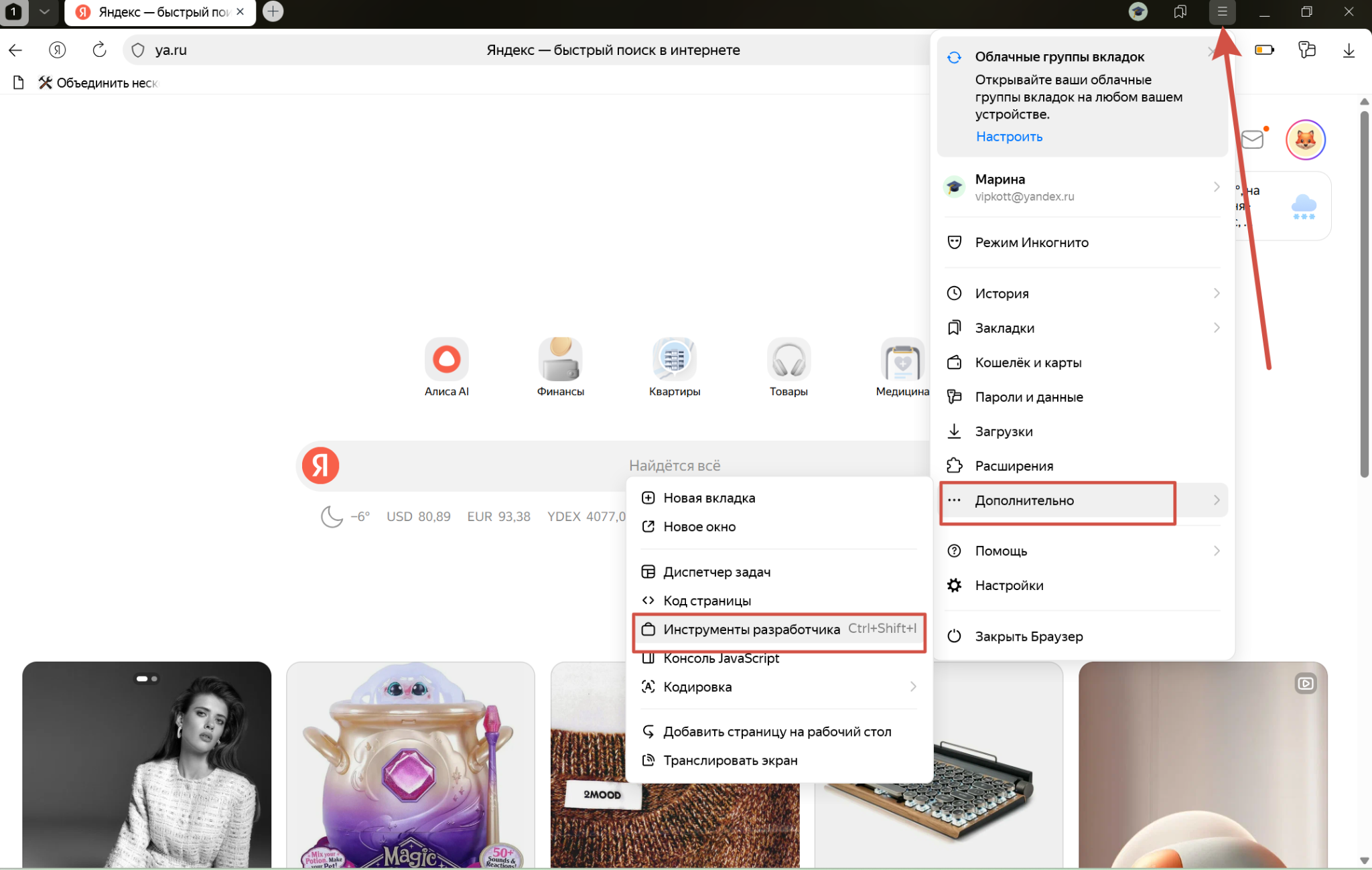 - Как открыть консоль разработчика