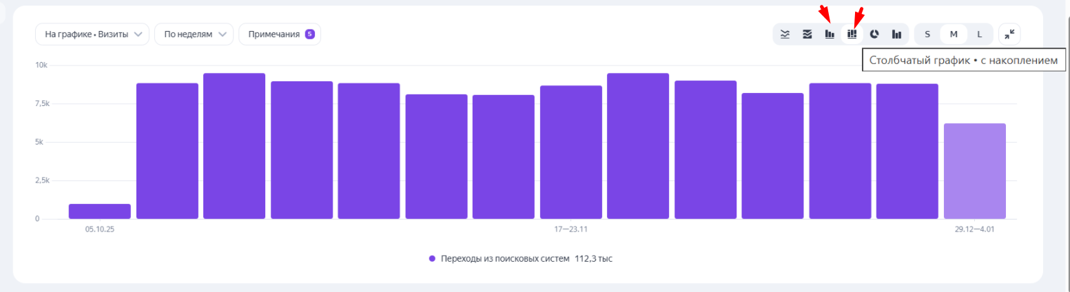 2. Управление отображением метрик перенесено из настроек таблицы на график. Если раньше настройки метрик находились прямо в шапке таблицы, то после обновления их там больше нет.