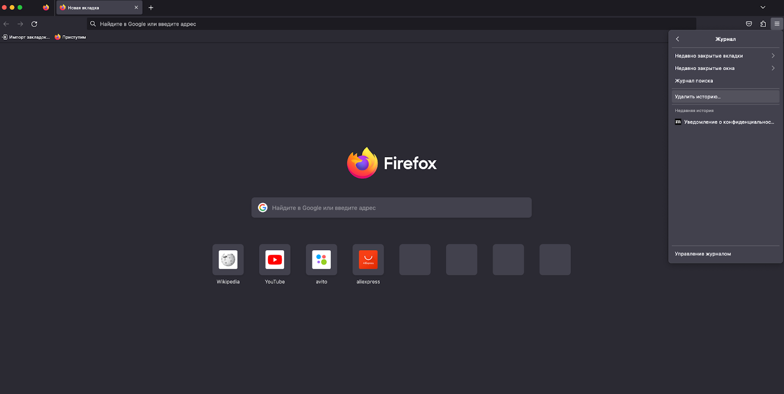 Нажмите на значок в углу в виде троеточия. Перейдите в Настройки — Конфиденциальность и безопасность — Очистить историю — Cookie и другие данные — Удалить данные.