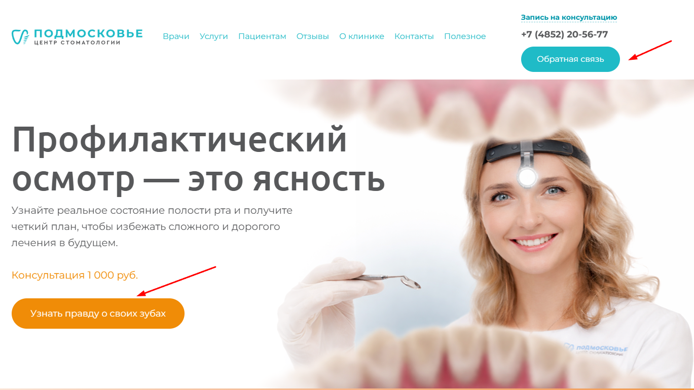 | Удобство сайта | Быстрая загрузка, мобильная версия, подробная информация, кнопка звонка, цены на услуги | Пациент записался на услугу, а не ушел к конкурентам |