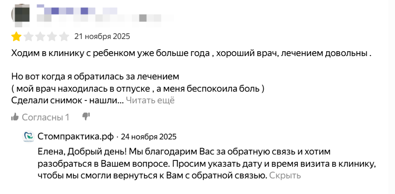 Один качественный ответ на негатив может принести больше пользы, чем десять шаблонных «спасибо» на позитив. Пациенты читают, как клиника реагирует на критику.