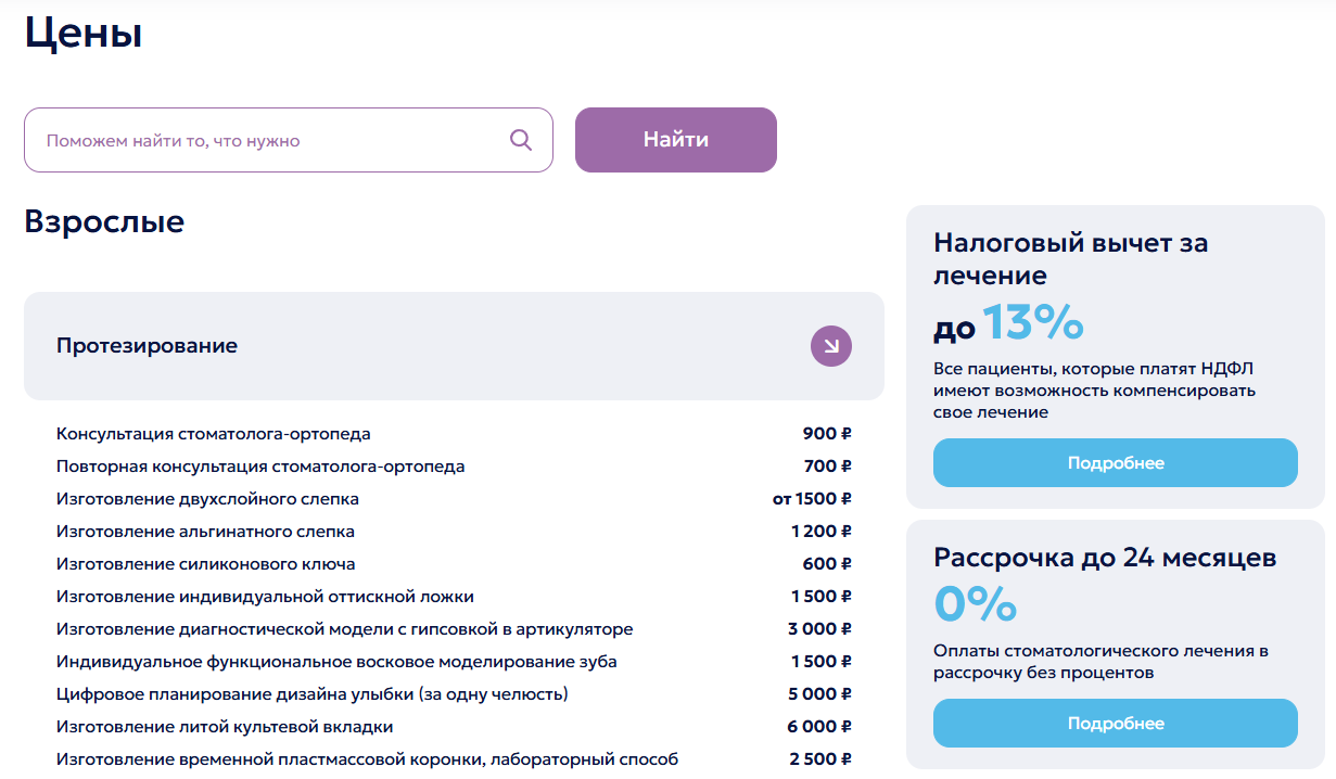Подробно описывайте методику, указывайте цены (хотя бы вилку с пояснением, от чего зависит стоимость), перечислите врачей, добавьте фотографии кейсов «до и после».