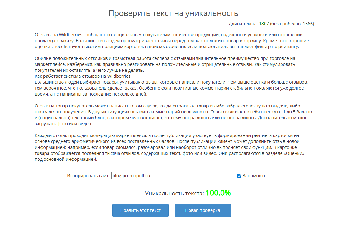 Онлайн-сервис для проверки уникальности, заспамленности и «водности» текста. Позволяет проверять как отдельные тексты, так и сайт целиком. Также на Text.ru есть нейропомощник для работы с текстами: копирайтинга, рерайтинга, обобщения смысла и других задач.