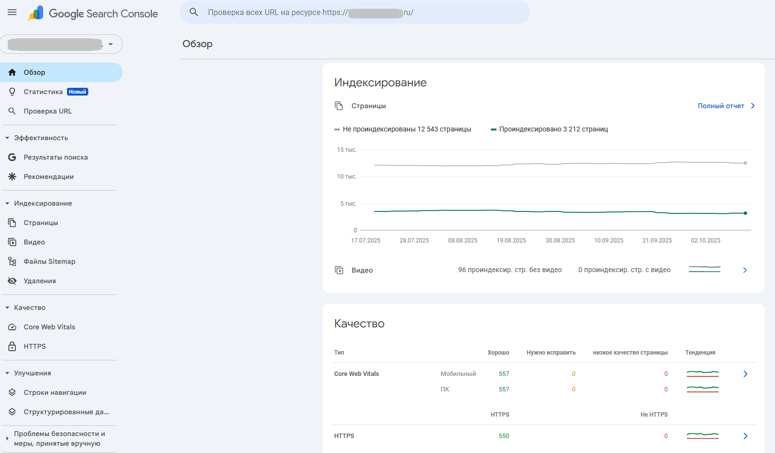 Сервис для вебмастеров от Google. Помогает оценить параметры сайта, важные для индексации и ранжирования в этой поисковой системе. Например, Core Web Vitals — детальные показатели скорости загрузки. Здесь же можно посмотреть, не наложены ли на сайт санкции со стороны Google.