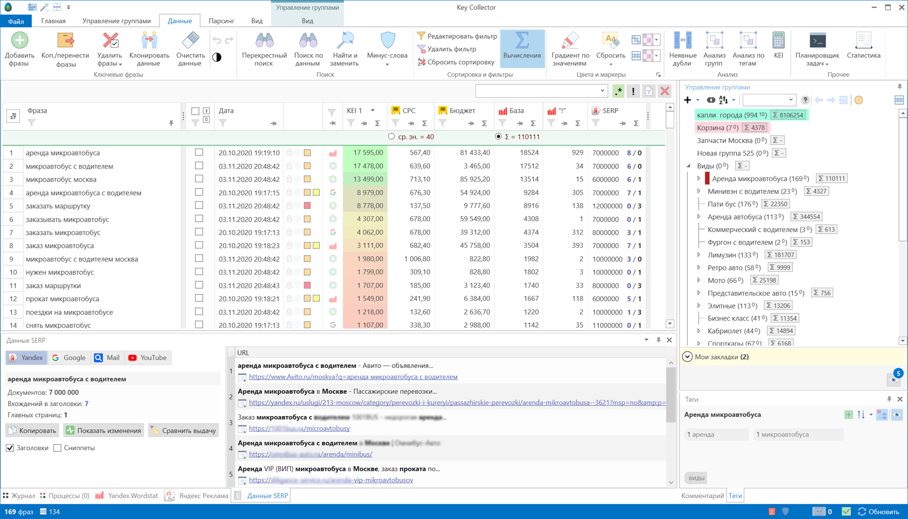Десктопная программа для работы с семантикой сайта. Позволяет собирать большое количество ключевых слов и группировать их в автоматическом или полуавтоматическом режиме. Помогает выявить дубли фраз, отфильтровать данные при необходимости.
