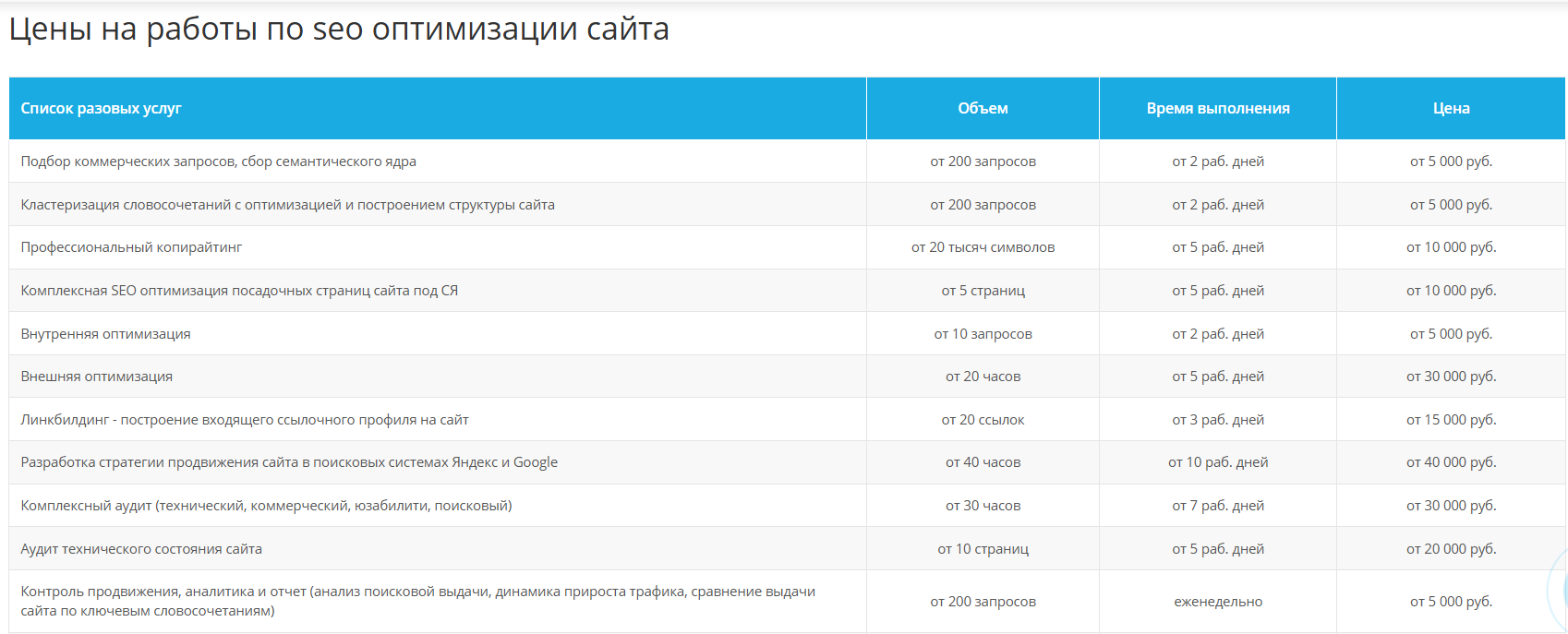 - Сбор и кластеризация семантического ядра (до 2000 запросов): 5000 – 20 000 ₽.