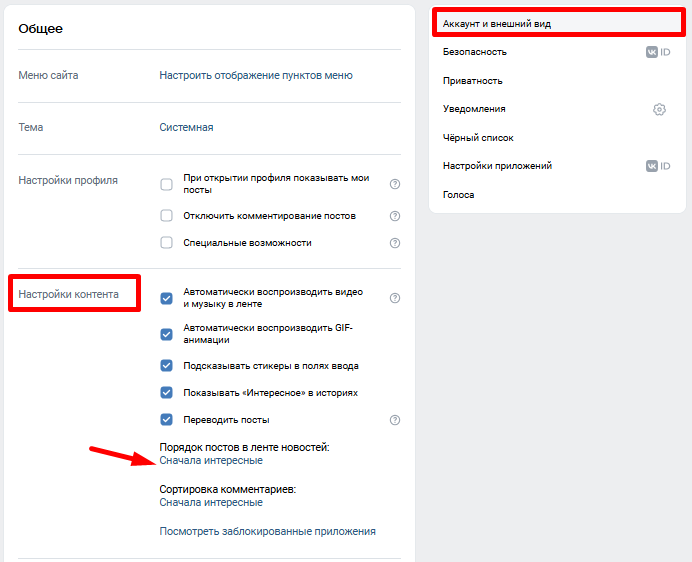 Если в настройках контента в пункте «Порядок постов в ленте новостей» указано «Сначала интересные», в профиле включена «Умная лента». В этом случае пользователю будут показываться новости не в хронологическом порядке, а с учетом его персональных интересов.
