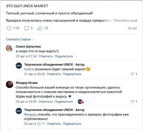 - Пообщаться в комментариях. Можно под постом в комментариях написать вопрос к ЦА или ответить на один из комментариев от подписчиков, вовлекая активных посетителей страницы в беседу.