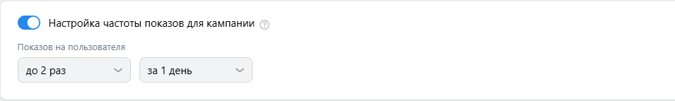 В настройках рекламы можно указать, сколько раз реклама будет показываться одному пользователю за сутки, 7 или 30 дней. Максимально можно установить показ рекламы одному пользователю до 30 раз.