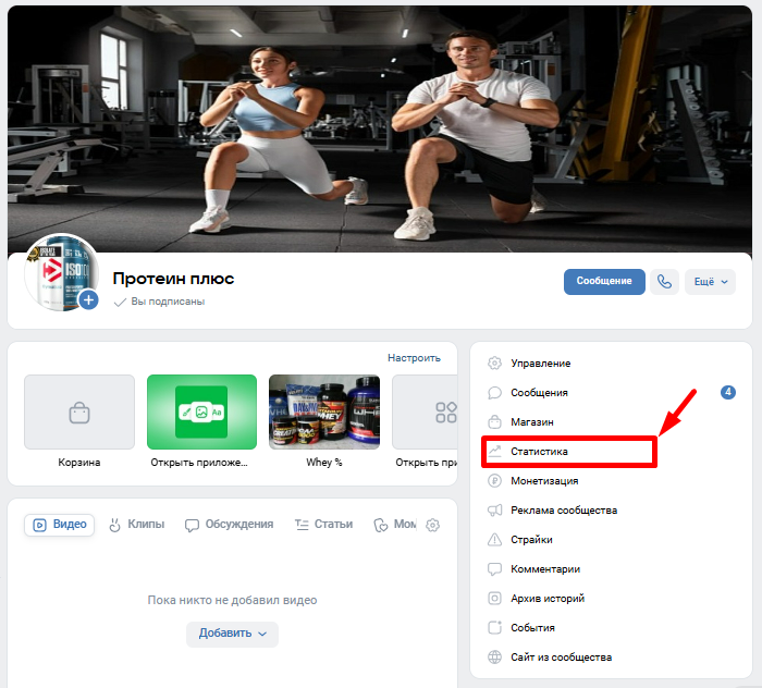 На странице сообщества на боковой панели справа нужно выбрать раздел «Статистика».