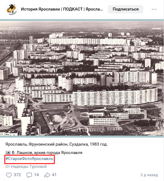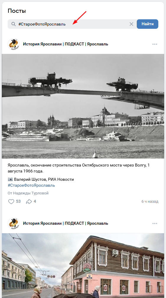 По клику находятся все посты в ВК, помеченные этим хештегом
