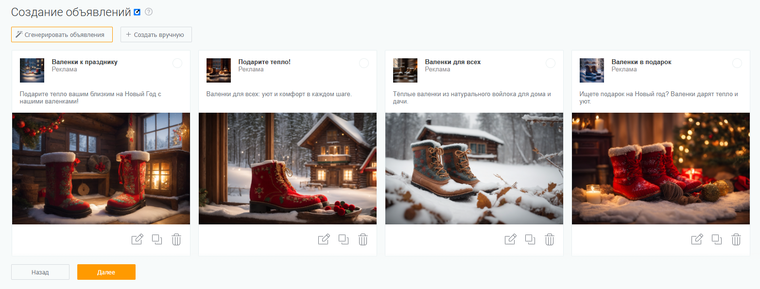 Важно! Не советуем изменять объявления после запуска кампании без особой необходимости. После корректировок они отправляются на повторную модерацию, а в праздники она может затягиваться. Если ваша кампания рассчитана всего на несколько дней, создайте разные варианты креативов и просто отключайте неэффективные.