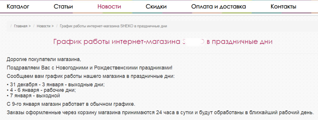 Исходя из всех этих обстоятельств продумайте ваш режим работы на праздничные дни. Обязательно напишите на сайте и на страницах в соцсетях, как меняются в праздники: