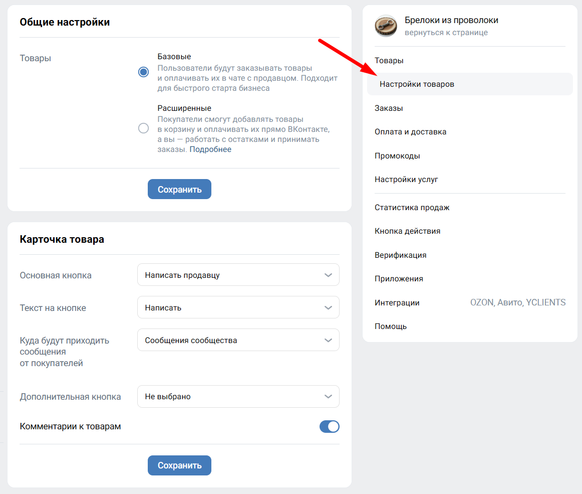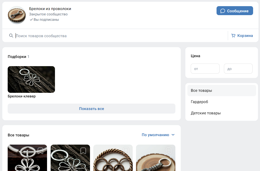 - Базовый. Карточки товаров будут общедоступны, но чтобы сделать заказ, покупатель должен написать продавцу и обсудить сделку в личных сообщениях. Там же можно будет оплатить заказанное.