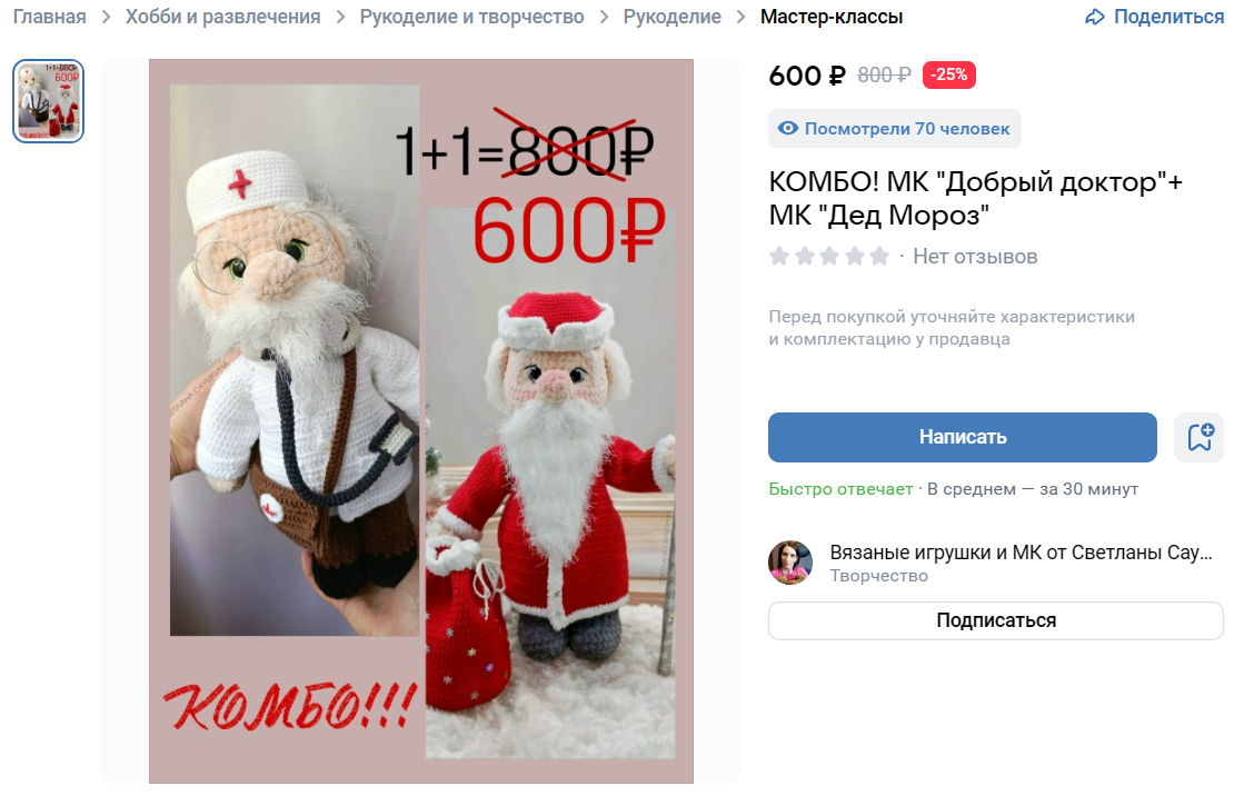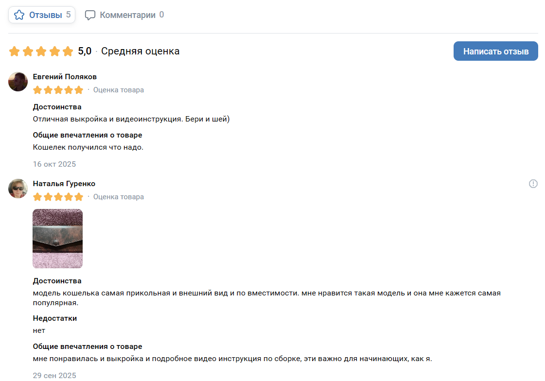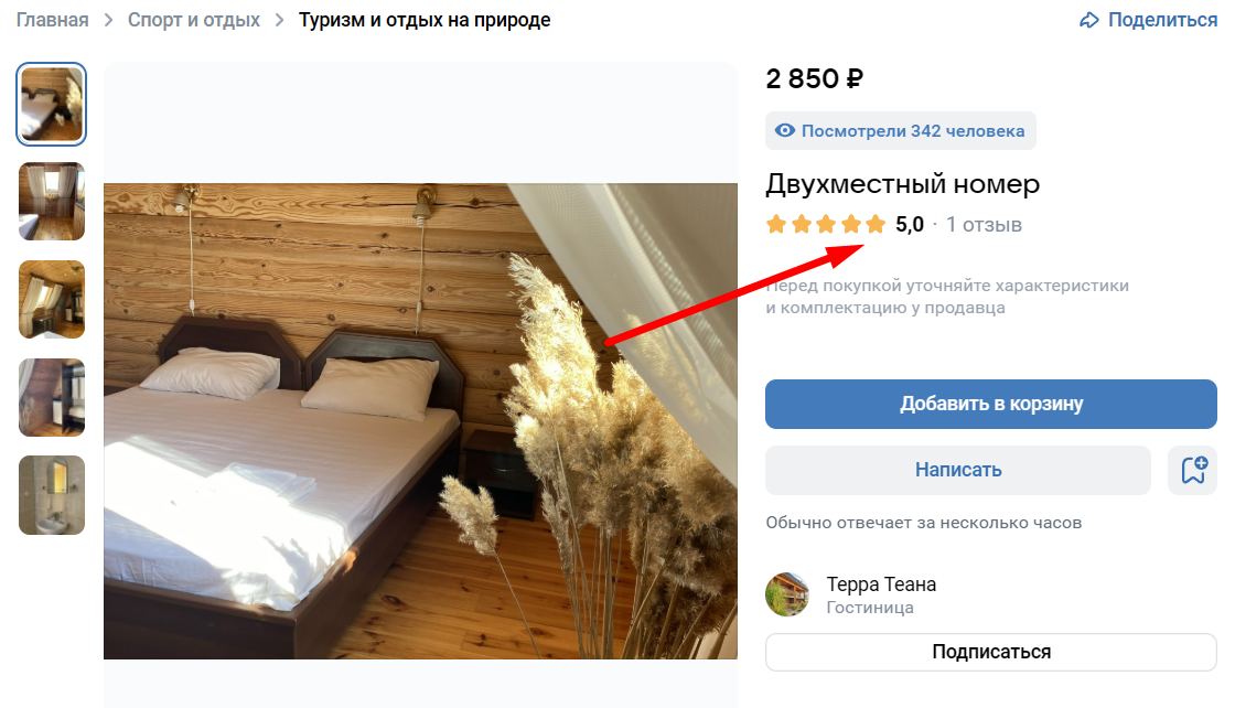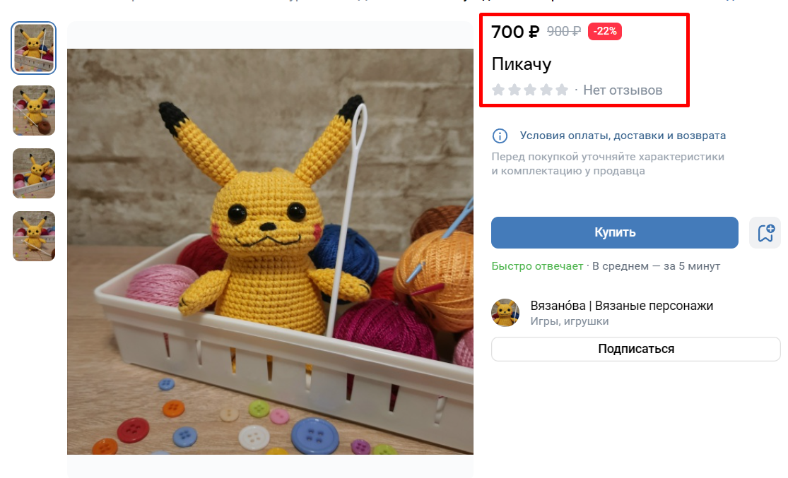 Люди охотнее покупают товар, если на есть отзывы. Мотивируйте клиентов оставлять отклики в карточке товара, например, с помощью скидок на следующие покупки или приятного подарка к заказу. Только не просите исключительно пять звёзд, чтобы ВК не счел это за накрутку. И сами вежливо отвечайте на отклики, чтобы создать впечатление вовлеченного продавца.