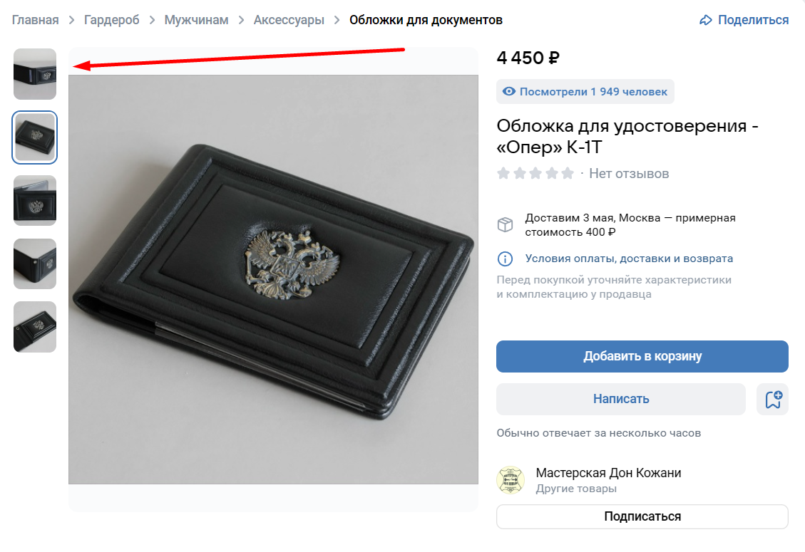 На них продавец показывает продукцию так, чтобы привлечь внимание и отразить её особенности, продемонстрировать внешний вид и функционал. Обязательно должна быть хотя бы одно фото, оно же будет обложкой. Можно загрузить ещё четыре дополнительных изображения, они могут иметь размер от 400 до 6000 пикселей по любой из сторон.
