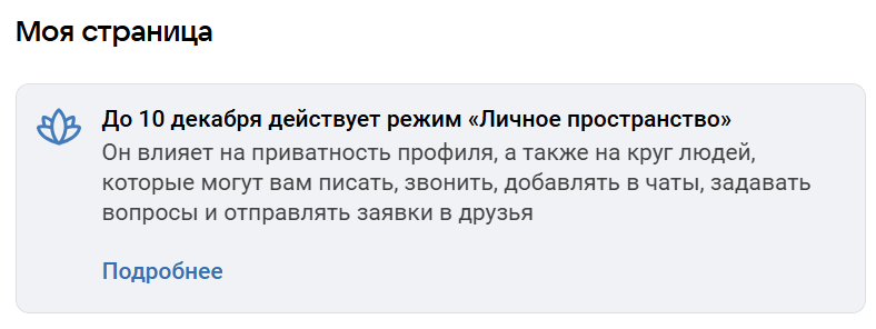 Через неделю приватный режим автоматически отключится, и страница снова станет открытой. Но можно отменить режим раньше, для этого нажимаем «Подробнее» → «Отключить режим».