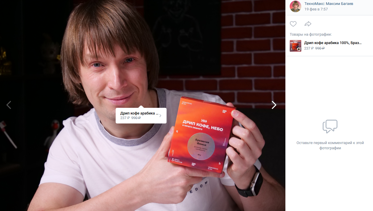 В примере ниже показано прямое рекламное размещение в формате поста со ссылкой для перехода на страницу товара.